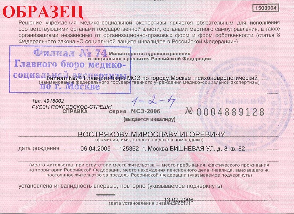 Справка, подтверждающая факт установления инвалидности
