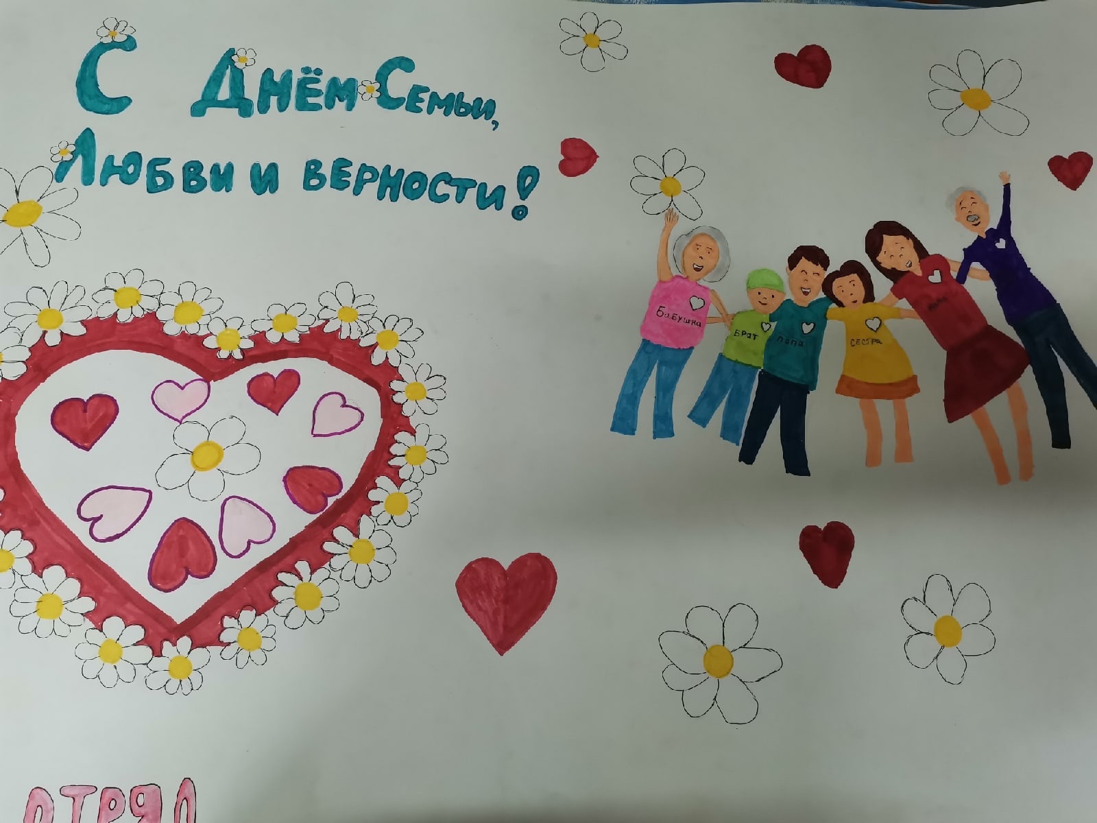 День семьи, любви и верности - праздник, история которого уходит в Древнюю Русь, а глубокий его смысл современен и актуален. Дети лагеря "Смена", структурного подразделения Дворца детского творчества, всегда с нетерпением ждут этот день. Выставка плакатов и рисунков на асфальте "Поле ромашек" , акции "Ромашка в ладошке", "Семейное древо", конкурс "Сударь и сударушка", а сегодня ещё и праздничный концерт группы "Крылатая пехота"! Лагерь "Смена" присоединяется ко Всероссийскому Дню единых действий вместе со всеми лагерями России в честь этого праздника!