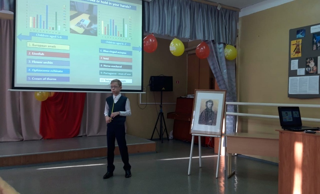 Обучающиеся «Английского клуба» также откликнулись на участие в городском конкурсе по английскому языку "Калейдоскоп идей", который проходил в ЦДТ «Созвездие». Чурилов Владимир выступил с проектом на английском языке и занял 1 место под руководством педагога Козловой М.А.