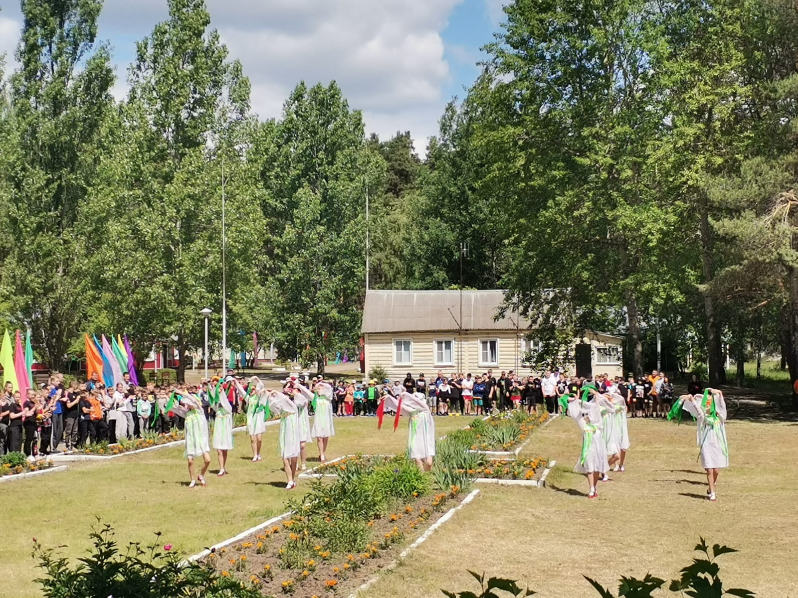 В Рязанском городском Дворце детского творчества стартовал летний оздоровительный сезон 2023 года. Воспитанники структурных подразделений ОЛ "Смена" и ОЛ "Сказка" собрались на торжественную линейку на базе лагеря "Смена". Всех присутствующих поздравили и пожелали отличного лета директор Рязанского городского Дворца детского творчества Татьяна Евгеньевна Пыжонкова и Екатерина Алексеевна Филиппова, Народный учитель Российской Федерации, член общественной палаты города Рязани. В честь открытия летнего сезона был поднят флаг и исполнен гимн Российской Федерации. Вдохновенно и эмоционально выступили с танцевальным номером ребята из ансамбля танца "Задоринка" (руководители Присмотрова Е.В. и Присмотров В.Л), а под песню "Вместе - целая страна" в исполнении студии эстрадного вокала "L-Kids Music" (руководитель Никитина Л.Э.) ребята из "Смены" и "Сказки" показали яркую музыкально-танцевальную композицию. Пожелаем успехов детям и сотрудникам в проведении в ОЛ "Сказка" профильной смены "Театральное лето!", а в ОЛ "Смена" - в реализации программы "Мир дружбы" под девизом: "В мире жить и дружить!".