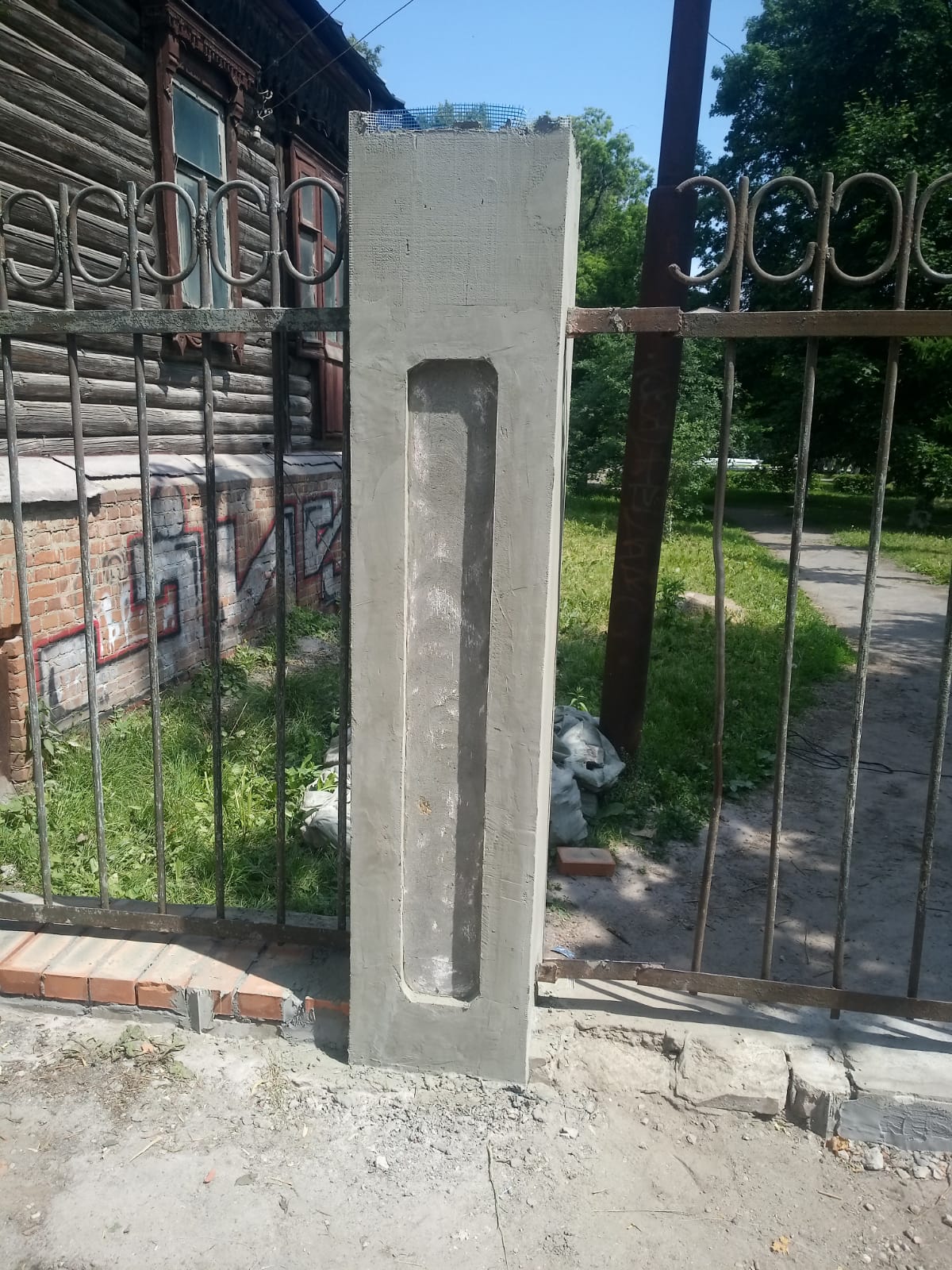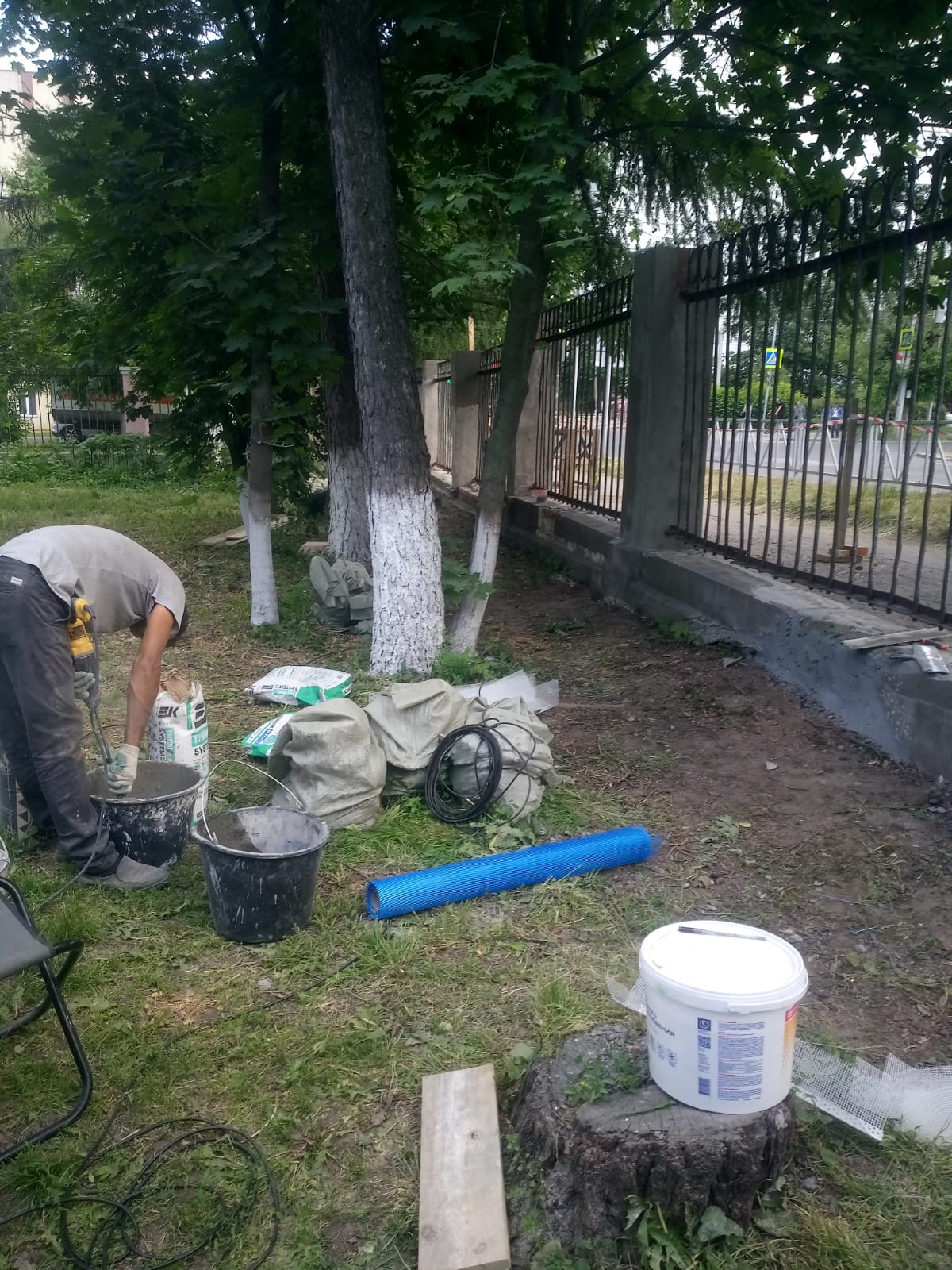 Продолжаются ремонтные работы забора Дворца детского творчества