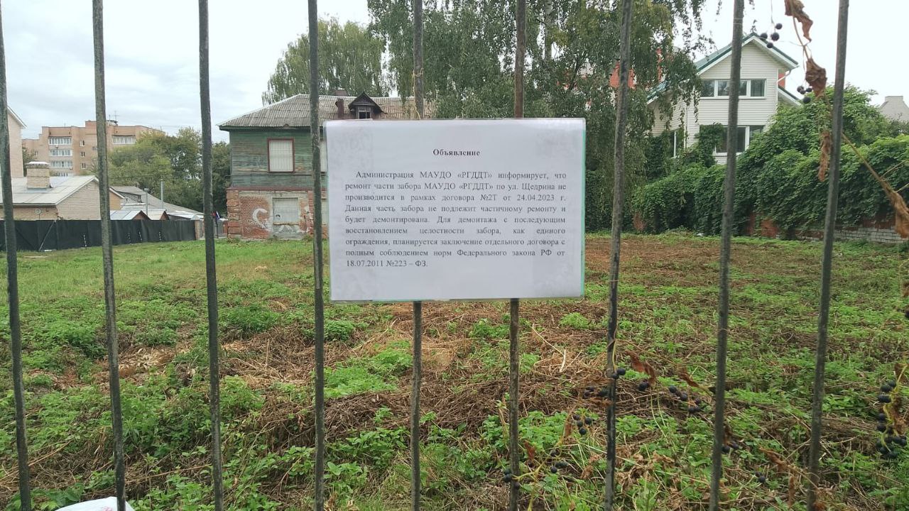 Администрация МАУДО «РГДДТ» информирует, что в рамках договора №2Т от 24.04.2023 г. (далее - Договор) осуществляется ремонт забора МАУДО «РГДДТ» на средства от приносящей доход деятельности учреждения.