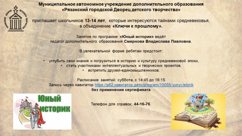 Приглашаем школьников 13-14 лет о объединение "Ключи к прошлому"
