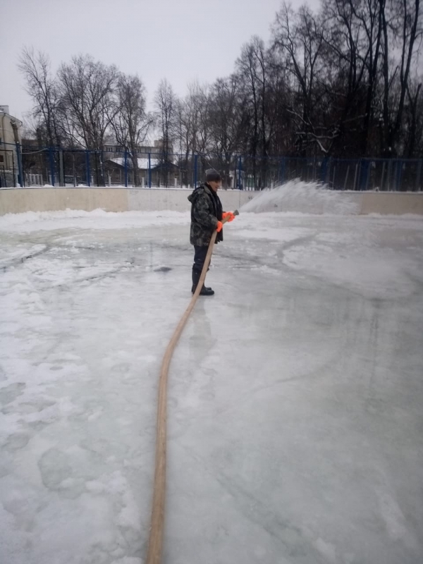 На спортивной площадке РГДДТ начата заливка уличного катка.